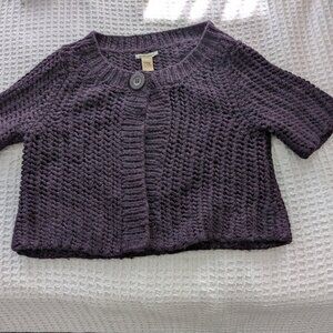 Ruff Hewn 45% acrylic, 30% wool & 25% alpaca purple short sleeve large sweater in great condition. Smoke & Pet free home.
