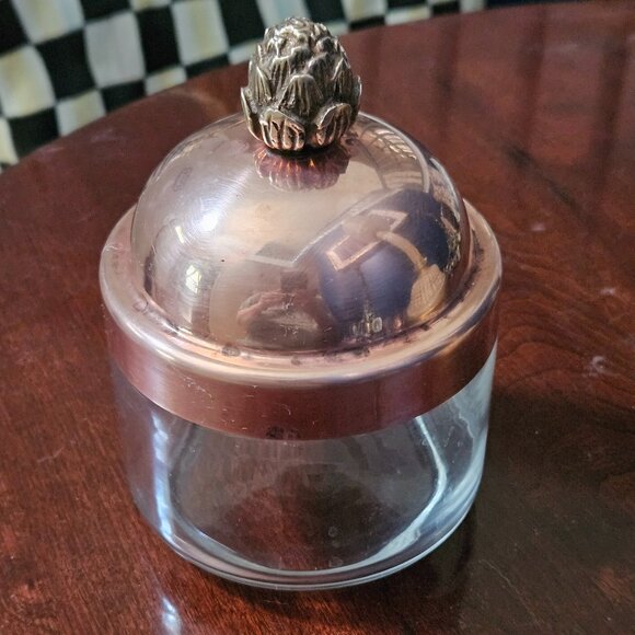 RUFFINO SMALL ARTICHOKE COPPER TOP GLASS KITCHEN COVERED STORAGE CANISTER JAR