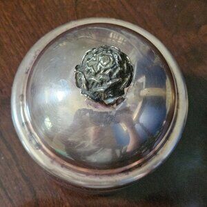 It measures 6"H (from top to bottom...with the lid on.) It measures 3 3/4"W (at base, from left to right.) It measures 3"H (on the interior of the canister from top to bottom... without the lid.) This does have wear, tarnished, spots, scratches, and stains from storage. This is pre-owned. Comes from a non-smoking home. Pictures of actual item.