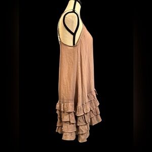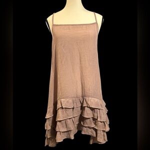 Step out in style with this elegant mauve cami featuring playful ruffles. Perfect for any occasion, this piece offers a chic and sophisticated look. Excellent for layering and used as a slip extension. It’s a bit sheer on top but could be layered and used as a dress. It has adjustable straps. It’s sooo cute! There is no brand tag, but I suspect it’s Easel.