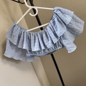 LIGHT BLUE CROPPED SHEIN TOP I THINK IT IS A SIZE SMALL