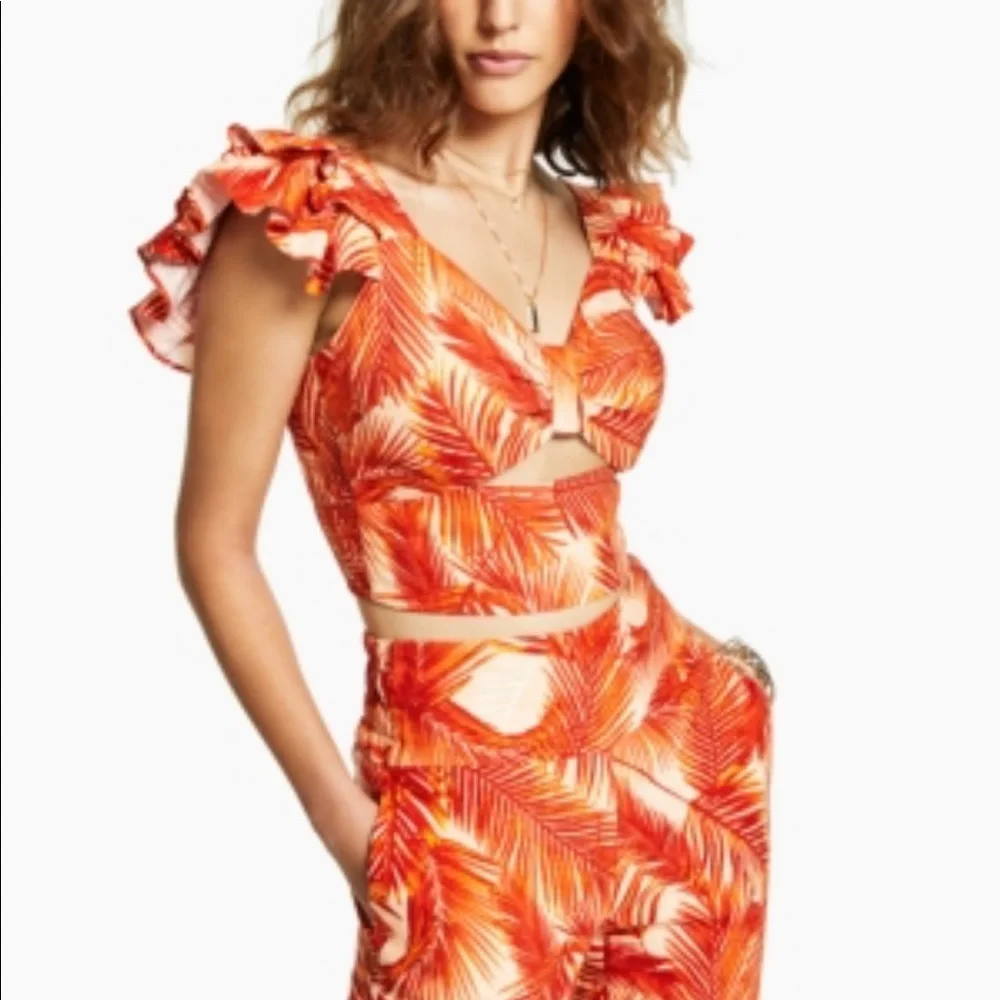 NWT! Cropped ruffle sleeve top with zipper back closure