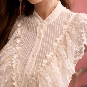 RUFFLE TRIM BUTTON FRONT LIGHTWEIGHT BLOUSE