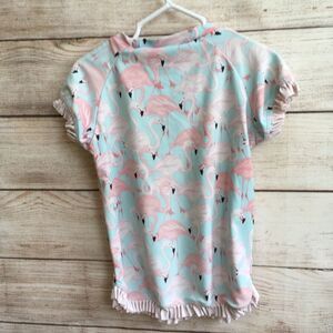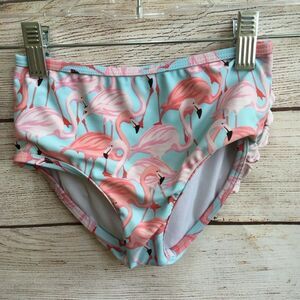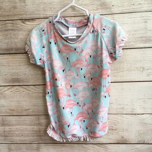EXCELLENT CONDITION RUFFLE BUTTS TWO PIECE SWIMSUIT IN FLAMINGO PRINT SIZE 5 80% NYLON 20% SPANDEX