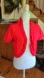 Cute berry red cardigan with layered ruffled edges. Subtle gathering at the waist in the back, giving it a tailored look that is flattering to the waistline.