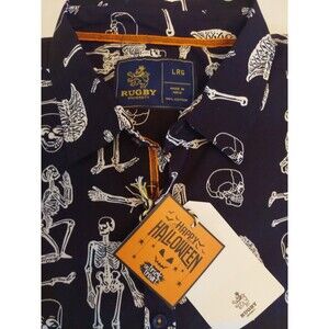 RUGBY University Halloween Button Up Casual 100% Cotton Short Sleeve Shirt NWT L