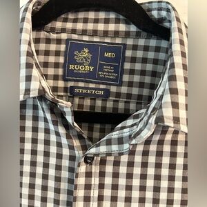 RUGBY check pattern no wrinkle shirt. 88%polyester& 12 % spandex. Pre owned like new condition. Sz Medium