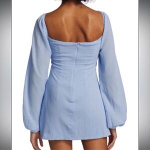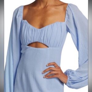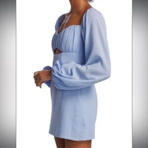 RUMER | Camille Cotton Cutout Long Sleeve Mini Dress Blue | Large New with Tag. Chest area is lined with boning. Sleeves are elasticized. Back zipper. Sold out in this size on Saks website.