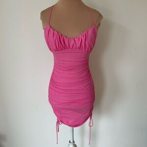 RUMOR Total Time Pink Ruched Open Back Y2K Mini Party Bodycon Dress NWT AU6/US2
