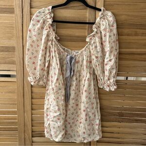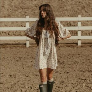 A vintage daydream. This dreamy babydoll dress looks like it was plucked straight out of the ‘50s. It’s the definition of country charm with a ditsy floral print, subtle ruffle accents, and pretty puffed sleeves.