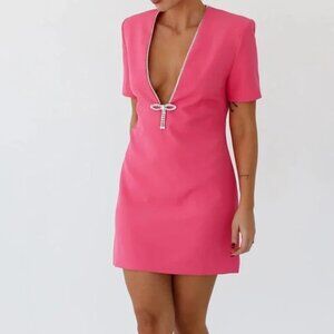 RUMORED Disco Mini Dress V Neck – Barbie Size M Pink NWT