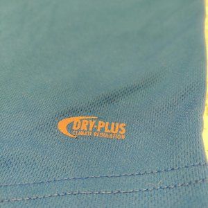 "RUN FAST" PRO TOUCH Dry-Plus Climate Regulation T-Shirt. Electric Blue with yellow green graphic and reflective details.