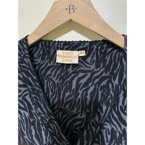 Very well made RUNGOLEE designer 100% silk animal print dress. Vneck, side ruffle , ruffle on flair sleeve. Hidden side zipper. Side pockets. Lined. Self belt. It's a masterpiece for a small woman.
