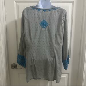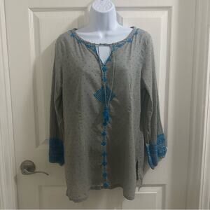 RUNGOLEE Gray Textured with Blue Embroidered Accent Blouse Top Women’s Small