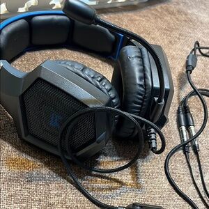 RUNMUS Gaming Headset- Black and Blue Over-Ear Wired Headphones