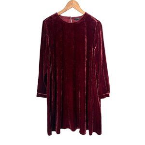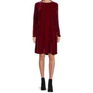 RUNS BIG Eileen Fisher Velvet Dress Knee Length Silk Deep Claret Red Womens M