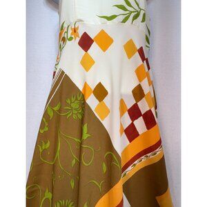 RUNVS Women's Long Maxi Dress Size S Multi Leaf Patchwork Sleeveless Back Tie