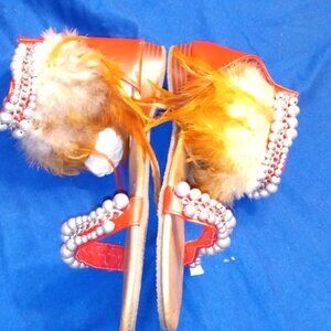 RUNWAY READY Red Feather Rhinestone Jeweled Sandal