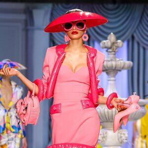 RUNWAY! SS23 MOSCHINO Couture Jeremy Scott Red Fuchsia PVC Oversized OSFA Hat