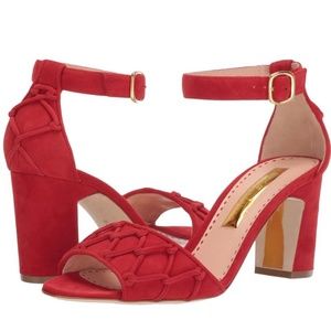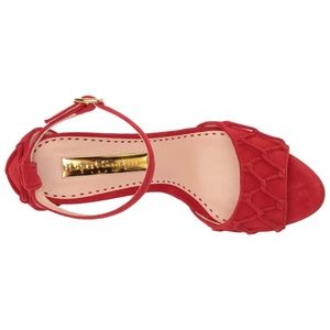 RUPERT SANDERSON Savanna Red Suede Heel Sandals