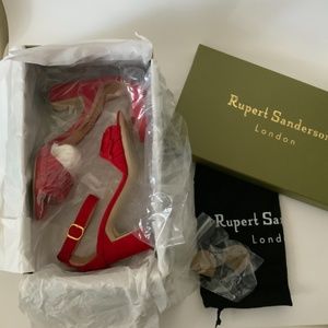 Rupert Sanderson Gladys red Suede Luxury Pumps Heeled Designer Sandals
