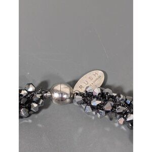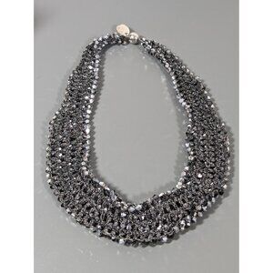 RUSH by Denis & Charles SIlver Gray Glass Bead Collar Necklace 16"