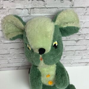 RUSHTON Atlanta Ga GREEN MOUSE Stuffed Animal Plush Vintage 1970s RARE READ. Good/Fair vintage pre-owned condition. Shows wear- floppy neck/paint on eyes scratched (see photos).