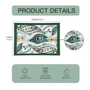 RUSPEPA Placemats Set of 4 with Peacock Feather Design, Heat Resistant Washable Linen Table Mats for Kitchen, Dining, Decoration,Party - 12 x 17 Inches