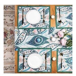 RUSPEPA Placemats Set of 4 with Peacock Feather Design, 12 x 17" Nice!! NEW!!
