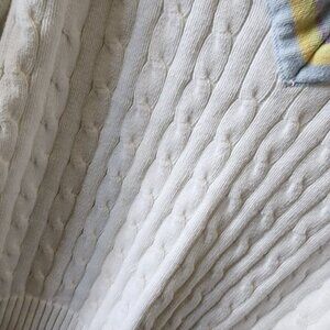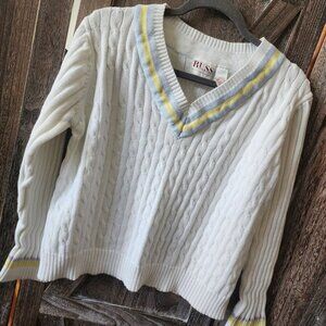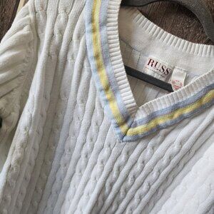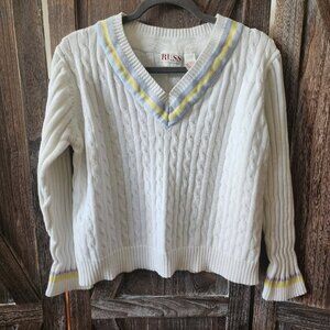 RUSS Liz Claiborne V-Neck White Tennis Sweater Women's Size XL Preppy Cable Knit