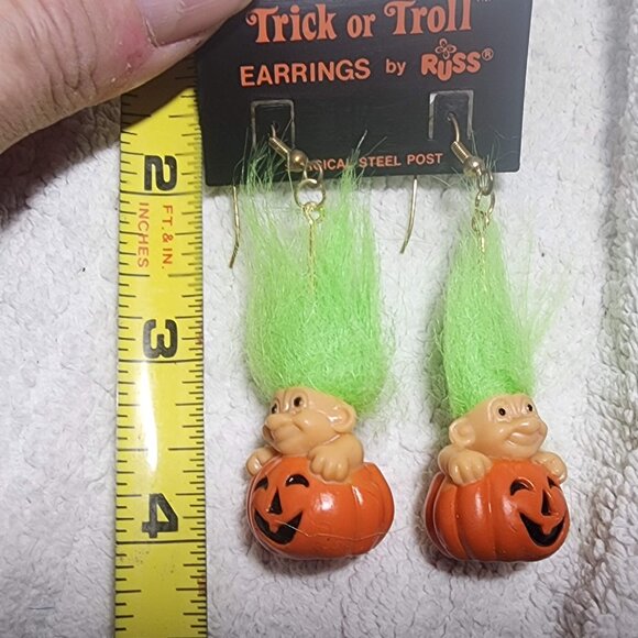 RUSS TRICK or TROLL DOLLS Halloween Earrings JACK O LANTERN Green HAIR
