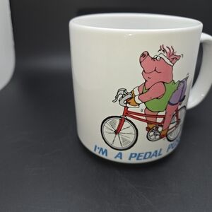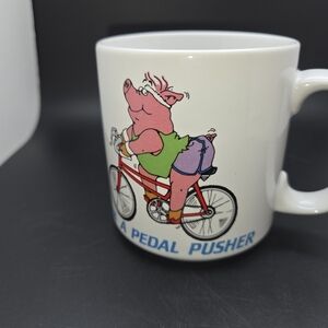 RUSS Vintage Coffee Mug I'M A PEDAL PUSHER CERTIFIED FITNESS FREAK PIG BICYCLE