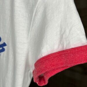 LOUISIANA TECH BULLDOGS RED,WHITE, AND BLUE RINGER TEE. COLLEGE NAME HAS A VELVET TEXTURE. COLLEGE LOGO SCREEN PRINTED IN THE MIDDLE. WORN ONCE. WHEN I WASHED IT A LITTLE OF THE COLOR OFF THE RED RING AROUND THE SLEEVE BLEAD ON TO THE WHITE SLEEVE. ITS IS HARDLY NOTICEABLE.SEE PICS FOR MATERIAL INFORMATION. OFFERS WELCOME.