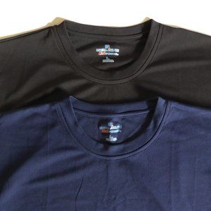 New, never worn, lot of 2 mens Russell brand, sleeveless athletic / work out shirts. Color: 1 qty Black & 1 qty Navy Blue. (See photos for details).