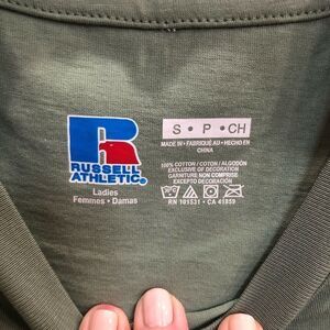 Russell Athletic makes this bundle of four (4) Women's Short-Sleeved, Crew Neck Tees in muted colors, ladies size SMALL. This bundle is brand new and in muted colors of lavender, plum, brick red and sage green. They're 100% cotton, so machine wash (inside out) and tumble to dry on low. The pit-to-pit measurement is 19" (without stretching), the length is 24" and the sleeves are 7". Great for layering or wearing alone. Check someone (or more) off your Christmas list with this cute bundle of Russell tees. And they're NWT!