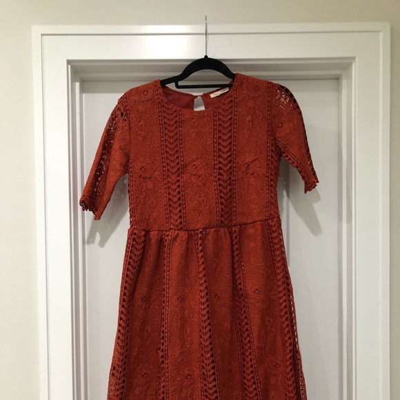 RUST TEA N ROSE MIDI DRESS