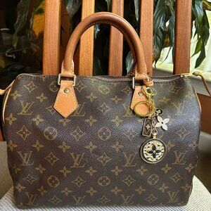 RUSTIC CLOVER BAG CHARM, Brown Black and Gold Tone Charms