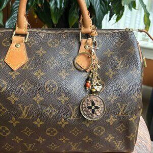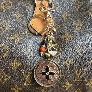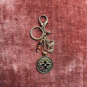 RUSTIC CLOVER BAG CHARM, Orange-Brown Black Gold Tone