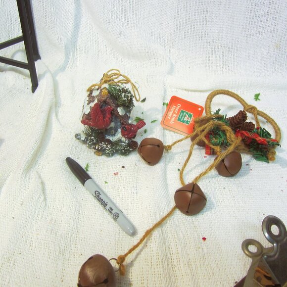 RUSTIC COUNTRY CHRISTMAS DECOR, BELLS DOOR HANGER, BIRD HOUSE ORNAMENT