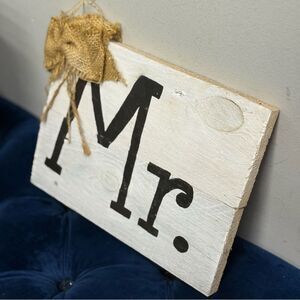 Adorable matching “Mr.” and “Mrs.” signs crafted on whitewashed rustic wood with charming burlap bows. These handmade plaques are perfect for weddings, bridal showers, anniversary photo props, or even bedroom décor. Slight distressing adds a touch of farmhouse elegance.