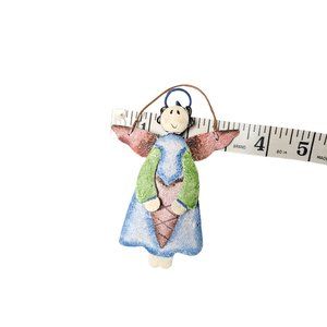 RUSTIC TIN ANGEL HOLDING HEART ORNAMENT CHRISTMAS DECOR 4.5" METAL HANDPAINTED