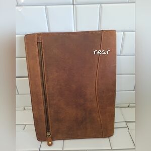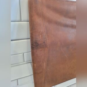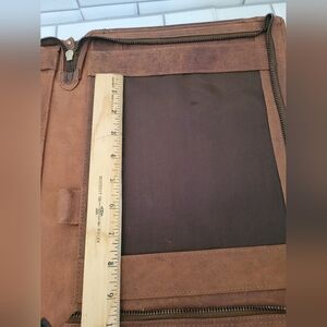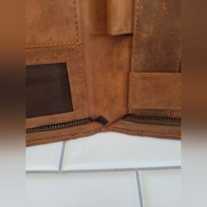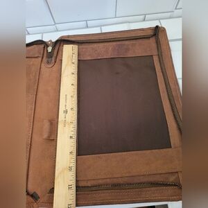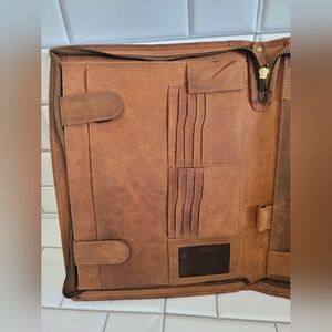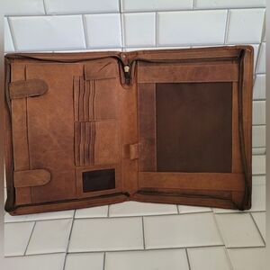 RUSTIC TOWN Brown Distressed Leather Multi Compartment IPAD Tablet Portfolio Zip Closure