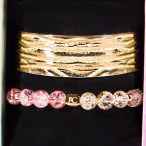 Rustic COTM April 2017 - Thanks! This one is great for Spring, Easter & Summer! Gorgeous sparkle textured gold band is adjustable. Beautiful translucent pink beads. Comes with bag or box- let me know which you prefer or I’ll pick! Thanks! B