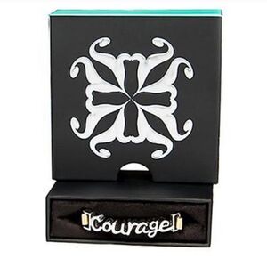 Rustic Cuff Gifters - Courage! Silver. Comes with signature box. The band is gold! It has a hinge link!
