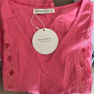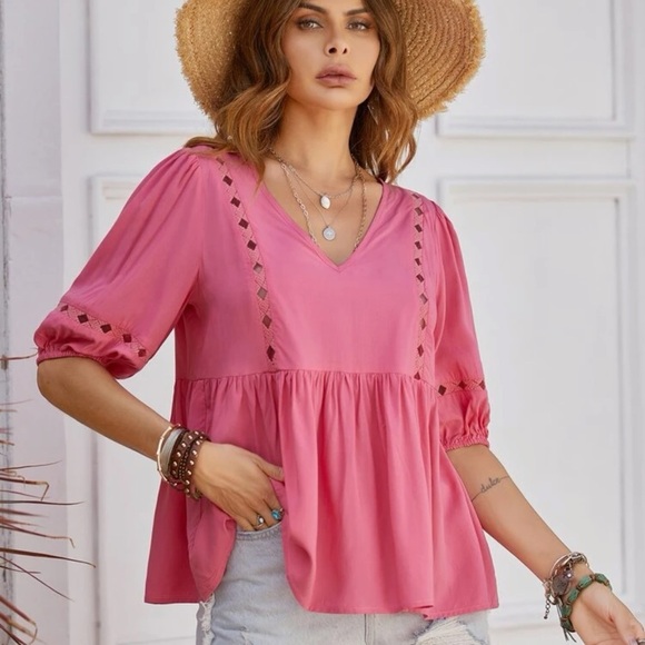 NEW Rusttydustty Cut Out Lantern Sleeve Peplum Blouse