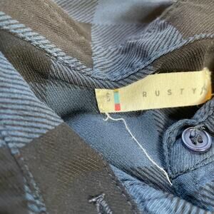 RUSTY 6 Small Blue Black Plaid Button Up Shirt Blouse Lightweight