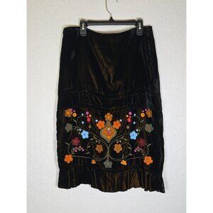 RUTH Velvet Flet Embroidered Flowers Midi Skirt Size 6