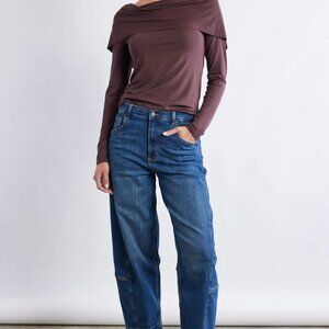 The Barrel Denim silhouette is a new and original take on the classic denim trouser. Style with your favorite tee or blouse for a casual look.
