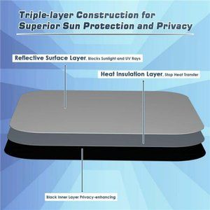 🧿As one of the must-have RV accessories for travel trailers, comprised of a three-layer material structure: the outer reflective silver layer repels sunlight and UV rays, the middle insulation layer blocks heat, and the inner black layer ensures privacy and darkness for a restful sleep.