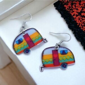 RV Earrings Retro Camper Dangle Drop Jewelry Camping Glamping Vacation Travel